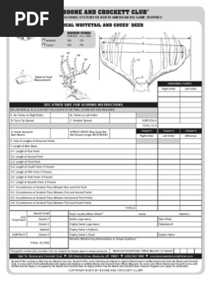 Score chart pdf files. Each score chart is available as a separate pdf file. How to measure a whitetail deer using the boone and crockett scoring method. The new edition is set to release in july 2016.
