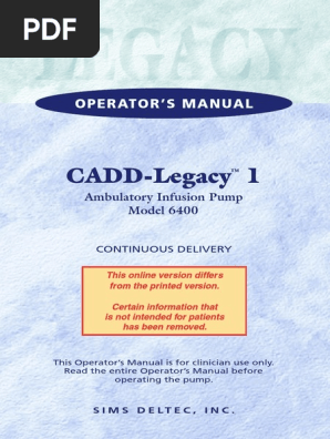 Smiths medical cadd legacy plus operator s manual. The pump has 3 security levels designed. This pump delivers medication at a continuous rate or intermittent rate in milliliters per hour ml hr. This site uses cookies.